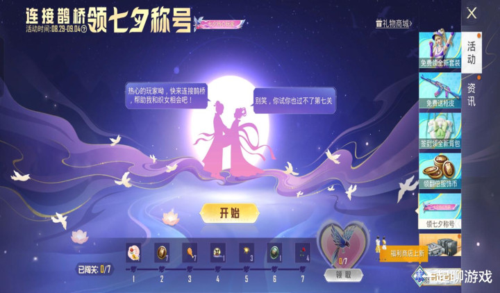 这第2个惊喜被命名为“链接鹊桥”,牛郎织女的对话是:热心的玩家哟,快乐链接鹊桥,帮助我和织女相会吧!别笑,你试你也过不了第七关!