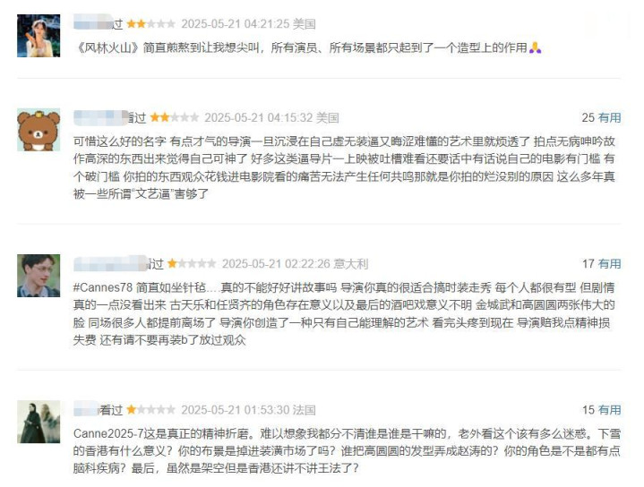 而造成这种现象发生的原因,或许就在于《风林火山》于5月中旬在戛纳国际电影节上进行了首映后,观众口碑太差,很多人都直接给出了一星和两星差评,称影片很难看。