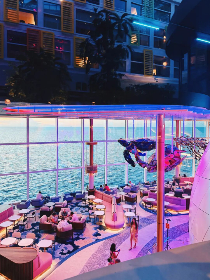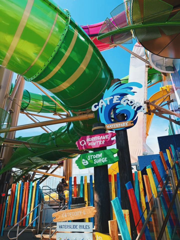 作为次世代的游轮,整艘「海洋星际号」就像一个沉浸式的「皇家加勒比主题乐园」——一共有八个主题园区,这其中有一些必须体验的玩乐项目:无论是家庭同乐的亲子向「奇趣之境 Surfside」,还是海上最大水上乐园——刺激感爆棚的「风暴穿梭 Category 6」,或是悬于海面 154 英尺之高的极限挑战项目「王者之巅 Crown’s Edge」……这里的每一个区域,都和陆上的乐园别无二致,光是在船上你就能玩得够尽兴了。