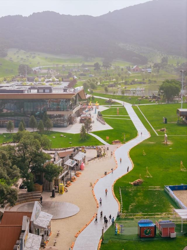 俯瞰东北亚云端草原,景区有滑草场、游乐场等多种休闲娱乐园区。