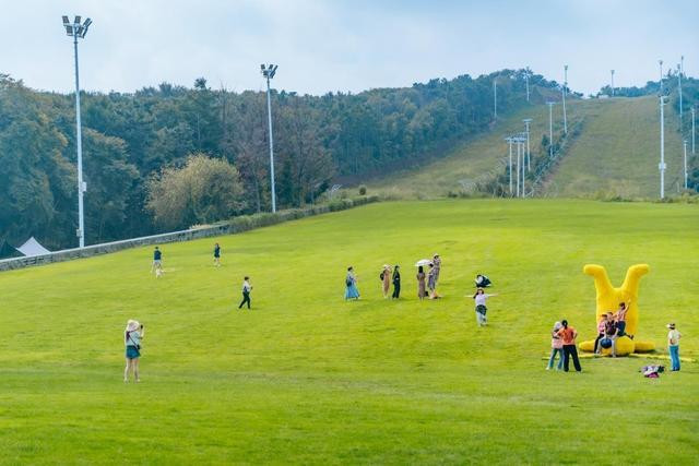 离开金色的稻浪,来到沈阳石人峰下的东北亚云端草原,这里呈现出另一派生机勃勃的景象。绿草如茵,宛如巨毯沿山坡铺展。全长520米的滑草场上,游客乘滑车飞驰而下;一旁的云端牧场中,梅花鹿、杜泊绵羊、鸵鸟等动物悠闲踱步,处处欢声笑语,热闹非常。